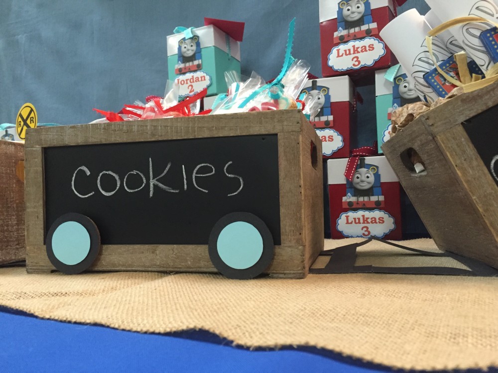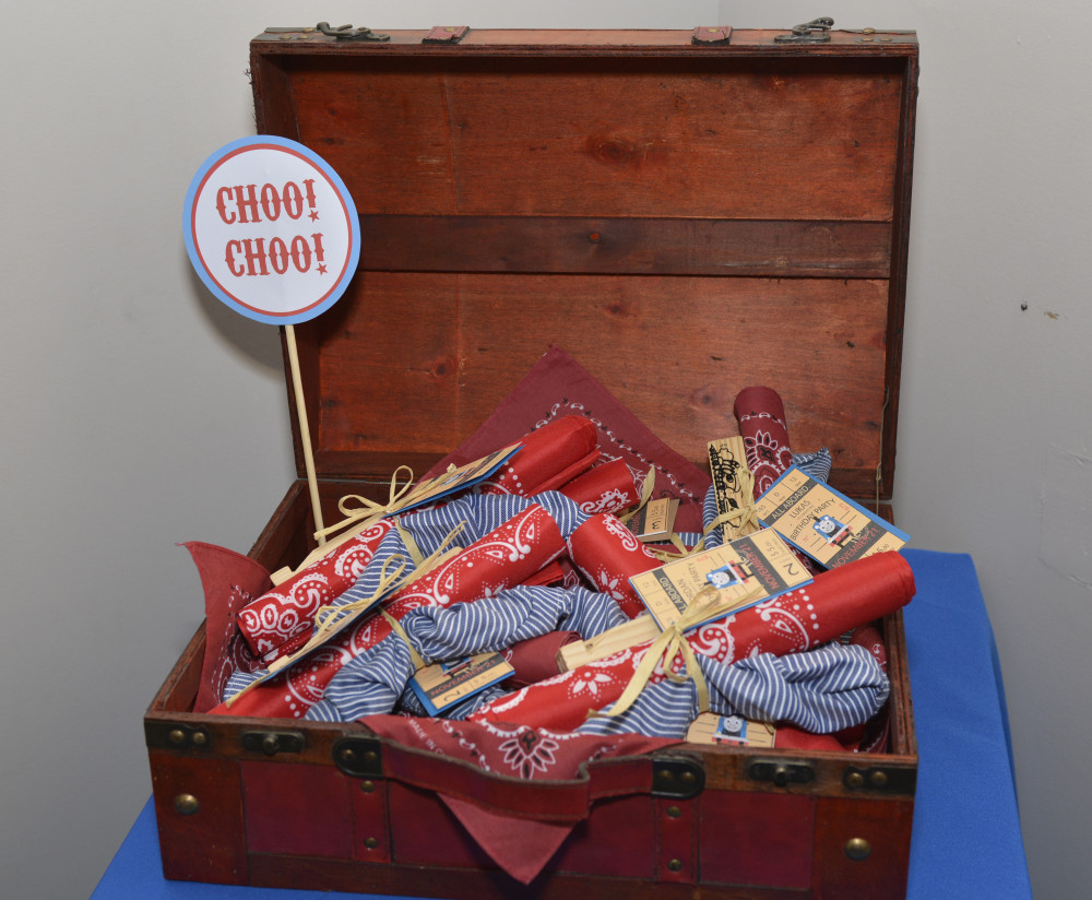 Favor table displayed an idea of the natural location of the rails road on one side whereas the other side was decorated as landscape,We can also find elements of the the train conductor, as well as the train station. A perfect blend of Choo Choo Train and train conductor customs.Sweet table was finely decorated with Party favors customized boxes, coloring pages bubbles were beautifully placed on either side of the table. The stationary and printable were too adorable and cute!. everything was custom made just for these two beautiful children. I was pleasure all with a vintage style, giving a sense of antique, simple and at the same time contemporary
