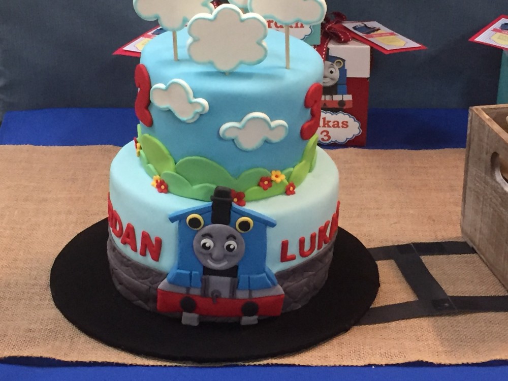 Starting with Party highlights, the sweet table or dessert table was the center of attraction of the party. Sweet table was dressed up as a little train making its journey through his place where every day the train has to cross mountains and different challenges, in order to do their job, loaded with delicious looking eatables and cute party favors. A fine backdrop fabric, displaying on the cloud the name of both child Jordan and Lukas, was in contrast with the Choo Choo Train sweet table. The Choo Choo Train cake was made in perfect contrast with the theme, decorated with fondant made a replica of the environment of the cute machine, placed on top of the center.